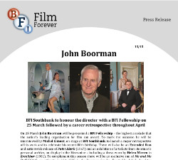 The BFI bestows its highest honour to John Boorman with a presentation of a BFI fellowship